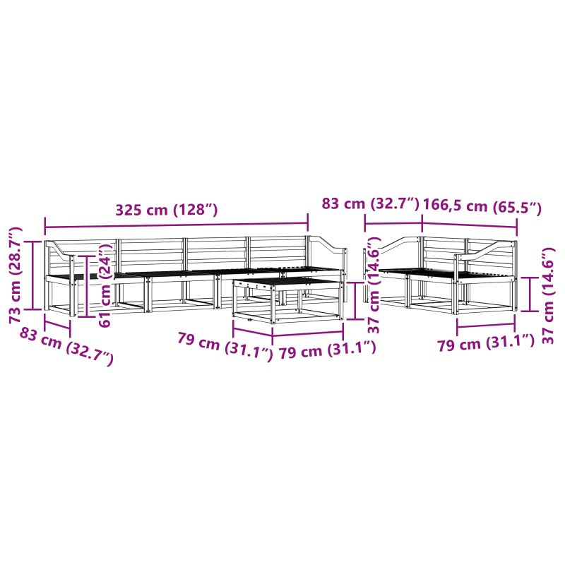 • 6 x Среден диван: 79 x 83 x 73 см (Д x Ш x В)