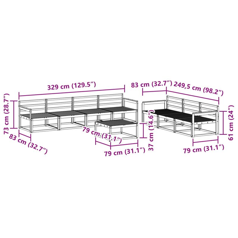 • 7 x Среден диван: 79 x 83 x 73 см (Д x Ш x В)