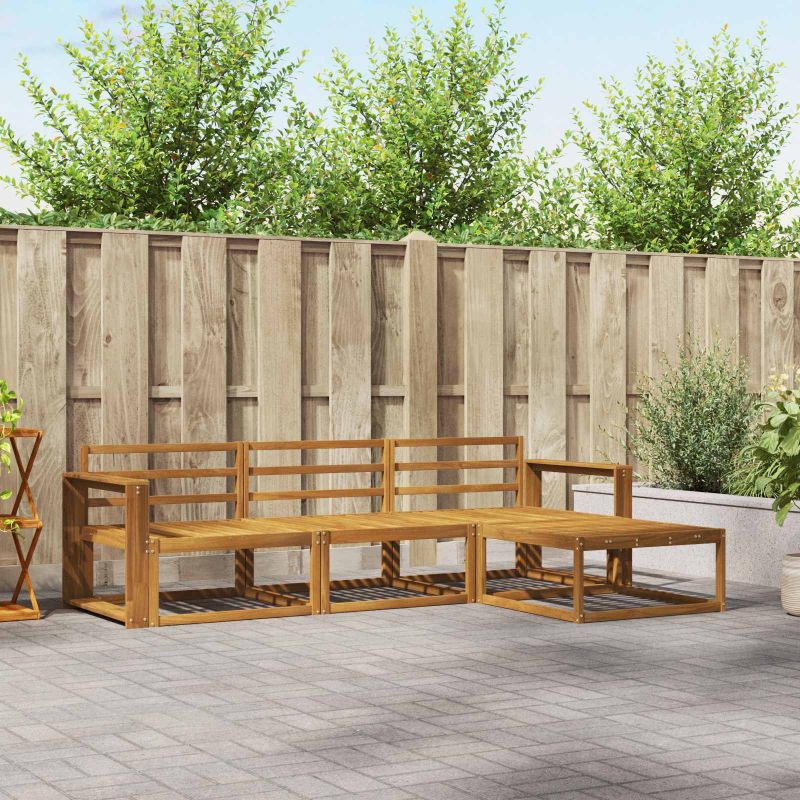 Този комплект за външни дивани съчетава модерен стил и красив дизайн, идеален за преобразуване на всяка градина, патие или зона около басейн в уютна обстановка за релакс и социализиране. Направен е от здраво акациево дърво с наситен кафяв цвят, което не само подобрява визията, но и предлага стабилност срещу различни метеорологични условия. Модуларната конструкция осигурява гъвкавост и креативност при подредбата, независимо от размера на пространство. Конструкция от масивно акациево дърво Този комплект мебели е изработен от независимо устойчиво на времето акациево дърво. Богатият кафяв оттенък добавя стил на всяка градина, а естествената му устойчивост осигурява дълготрайност и красиво излъчване с времето. Модуларен дизайн Предлага гъвкавост в подреждането, така че да можеш да конфигурираш седалките, както ти е удобно. Решетъчната структура осигурява ефективно отводняване при дъжд, което удължава живота на мебелите ти. Устойчиво на времето покритие Проектиран да издържа на външни условия, този комплект запазва яркостта и цялостта си, без значение от времето – от слънчеви дни до дъжд. Ергономичен комфорт Проектиран с удобство на ум: решетъчната облегалка поддържа гърба ти, предоставяйки комфорт при дълги часове на релакс. Лесна поддръжка Поддържай комплекта с покривала, когато не го ползваш, избягвай пряка слънчева светлина и просто избърсвай с влажна кърпа! Така ще му осигуриш дългогодишна красота и удобство.
