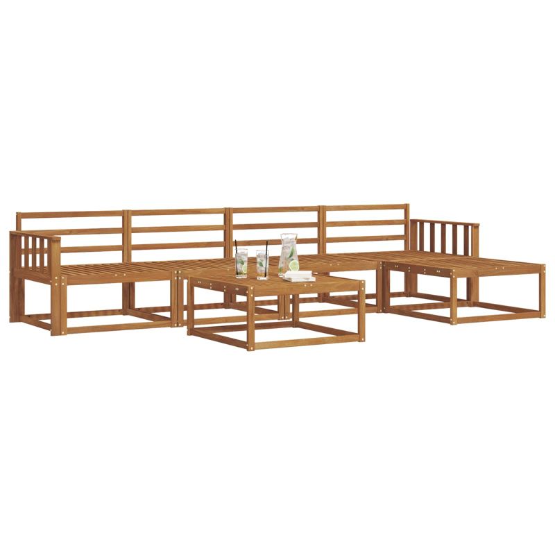 Този стилен открит ъглов диван комплект е супер модерен избор за сядане на всяко патио или градина. С чисти линии и модерен вид, той е направен от акустична акациева дървесина, известна с високата си здравина. Кафявият нюанс внася топлина и elegance, като го прави привлекателен център за откритите пространства. Идеален е за гости или за спокойни вечери, пък и перфектно се вписва във всякакви градински стилове, създавайки уютна атмосфера. Масивна акациева дървесина: Прекрасна и издръжлива, всяко парче е проектирано с грижа за дълготрайност и красота. Рамка с ламели: Дизайнът подобрява привлекателността и осигурява отражение на въздуха, така че да е комфортно и топло дори в горещи дни. Устойчиво на атмосферни влияния: Проектирано да устоява, този диван комплект е устойчив на UV лъчи и дъжд. Той е надежден избор за всеки сезон. Модуларна гъвкавост: Можете да пренаредите секциите, за да отговарят на пространството и поводите, от малки до големи. Лесна поддръжка: Поддържайте красотата с минимални усилия – просто избършете с влажна кърпа и използвайте покривало, когато не го ползвате.