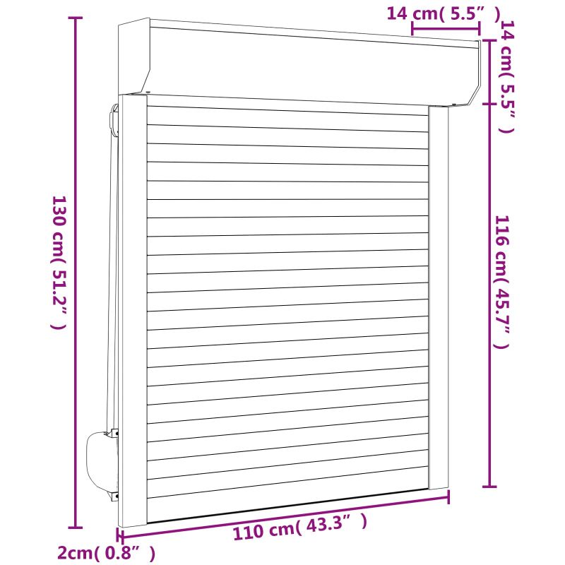 Тази модерен ролетен щора комбинира елегантен вид с практичен дизайн за външна употреба. Стилът му е свеж и модерен, а дизайнът му се вписва чудесно в всякакви декорации. Предлага страхотно решение за контрол на светлината, уединението и защита от времето. Комбинация от материали: Изработен от алуминий и полиуретан с стабилна структура и гладка повърхност. Тези материали осигуряват последователно представяне и елегантен външен вид. Включени компоненти: Всеки комплект идва с кутия за щора, насочващ канал, ръчно управление и всичките необходими аксесоари за монтаж, дизайнът е такъв, че да улесни инсталацията. Регулируема работа: Има ръчен механизъм, който позволява гъвкаво позициониране и управление на светлината и уединението според предпочитанията ви. Практичен дизайн: Структурата е оптимизирана, за да предложи стилен и подреден вид, като същевременно осигурява удобство в ежедневната употреба. Лесна поддръжка: Избърсвайте редовно с влажна кърпа, за да запазите добрия вид, и избягвайте агресивни препарати за почистване.