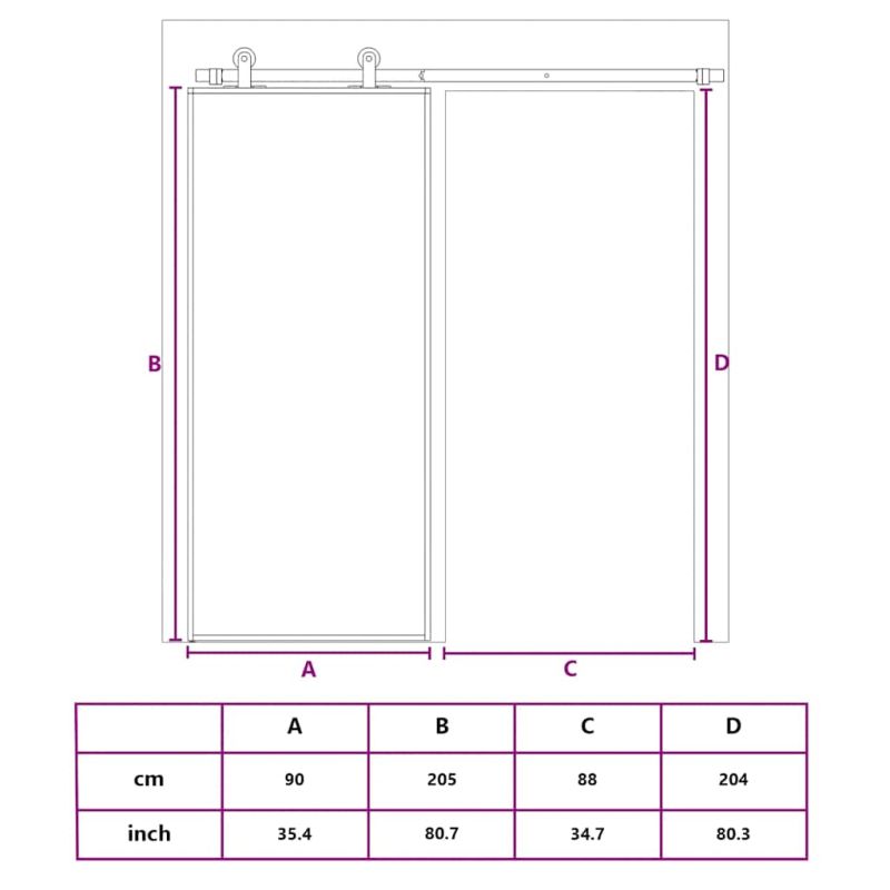 С тази плъзгаща се врата създавате елегантен преход от едно пространство към друго. Прозрачни стъклени панели: Тези прозрачни стъклени панели позволяват на светлината да преминава, което ги прави идеални за създаване на светла и отворена всекидневна зона.Здрава метална рамка: Тази плъзгаща се врата има алуминиева рамка за издръжливост и стабилност.Безопасно и тихо плъзгане: Благодарение на ограничителя, вътрешната плъзгаща се врата може да се отваря и затваря тихо чрез буферен механизъм.Тънък дизайн: Тънкият дизайн на рамката придава на плъзгащата се стъклена врата модерен и минималистичен вид. Добре е да се знае:Вратата може да се монтира само в комбинация с комплекти обков за плъзгащи се врати. Можете да намерите подходящите комплекти обков за плъзгащи се врати в нашия магазин.За начина на инсталиране можете да разгледате нашето ръководство за инсталиране на комплектите обков за врати и плъзгащи се врати.