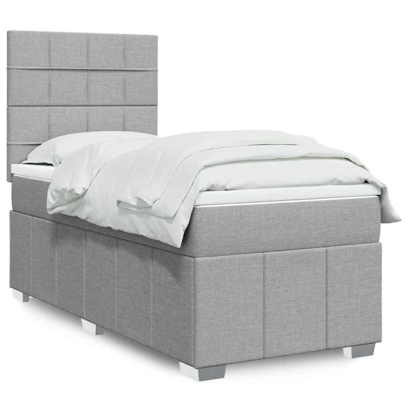Боксспринг легло с матрак, светлосива, 90x190 см, плат