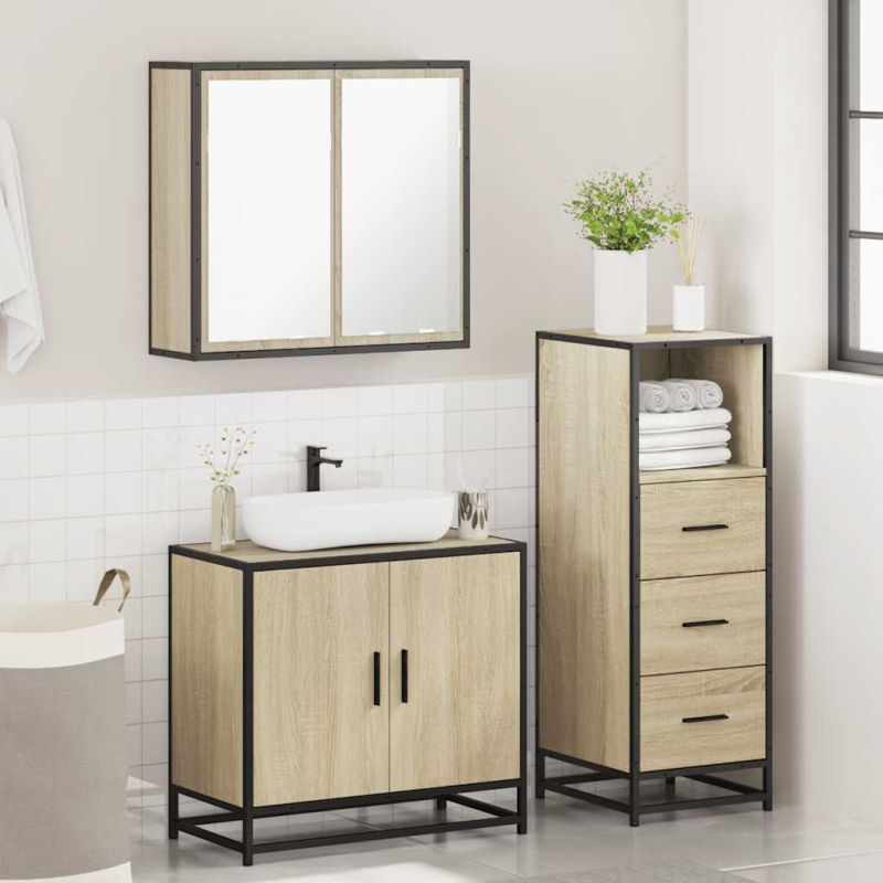 Комплект шкафове за баня от 3 части дъб сонома инженерно дърво