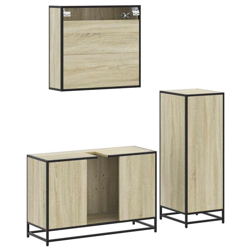 Комплект шкафове за баня от 3 части дъб сонома инженерно дърво