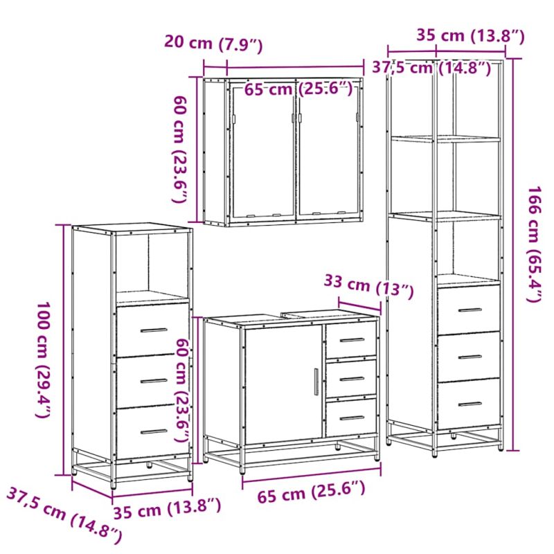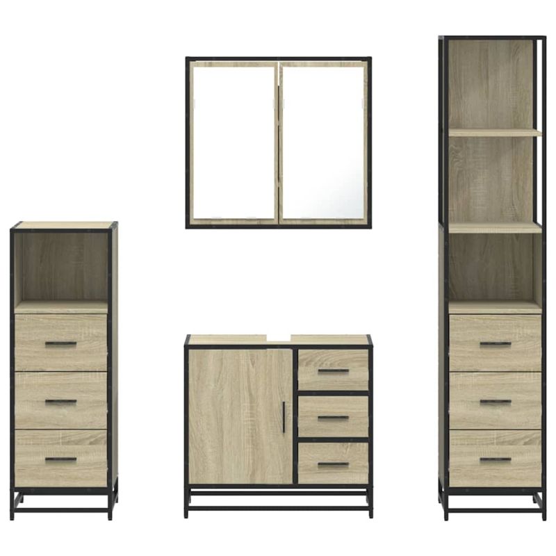 Комплект шкафове за баня от 4 части дъб сонома инженерно дърво
