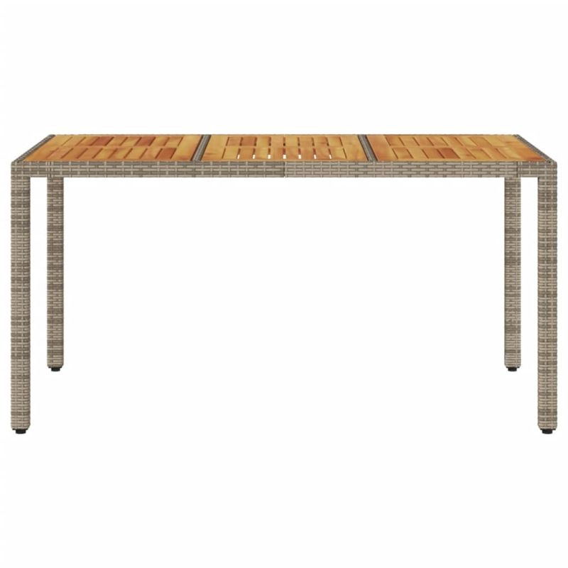 Тази градинска маса с дървен плот, проектирана с изчистени и семпли линии, е отличен избор за вашата градина, вътрешен двор и друго външно пространство. Издръжлив материал: PE ратан, известен също като полиратан, е здрав синтетичен материал с малко необходима поддръжка, който прилича на естествен ратан. Той е лек, лесен за почистване и често се използва за външни мебели поради своята издръжливост и устойчивост на атмосферни влияния.Стабилен и лесен за почистване плот: Тази градинска маса има плот от акациево дърво, който е здрав, издръжлив и лесен за почистване с влажна кърпа.Здрава и стабилна рамка: Стоманената рамка с прахово покритие гарантира, че градинската мебел е здрава и стабилна за ежедневна употреба на открито. Добре е да се знае:За да сте сигурни, че вашите външни мебели ще останат красиви, ви препоръчваме да ги защитите с водоустойчиво покривало.