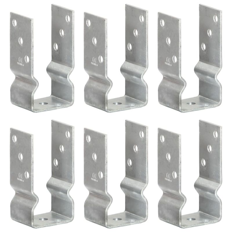 Оградни подпори 6 бр сребристи 7x6x15 см поцинкована стомана