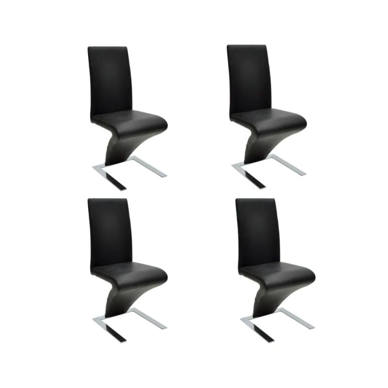 Този комплект от стилни трапезни стола ще внесе ултрамодерен стил във вашата трапезария или кухня. Той се отличава с изключително актуален дизайн, благодарение на своите елегантни, изчистени линии и извивки. Издръжливата конструкция на тези столове ще ви осигури много години ползване. В допълнение, уникалната зигзагообразна форма с фино черно покритие ще направи този комплект фокусна точка във вашата трапезария. Столовете разполагат и с ергономично оформени седалка и облегалка, което ви гарантира комфорт при седене. Доставката включва комплект от 4 черни стола.