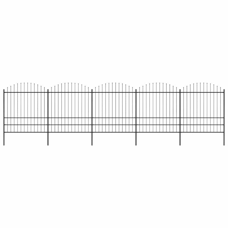 Градинска ограда с връх тип копие, стомана, 892,5x200 см, черна