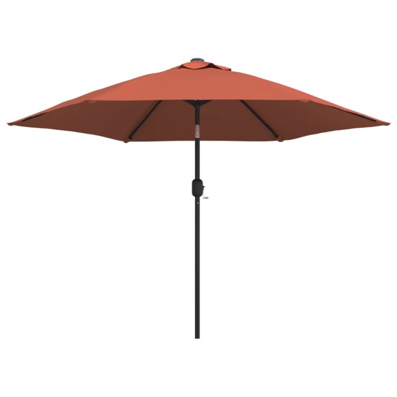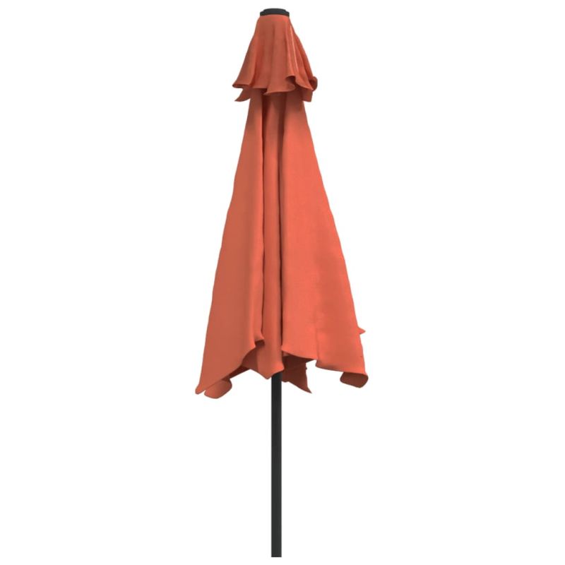 Този елегантен градински чадър е перфектно решение за създаване на сянка, с което да се предпазите от вредните UV лъчи на слънцето. Изработено от полиестер, предпазващ от ултравиолетови лъчи и против избледняване, покривалото за чадър ви осигурява оптимална защита срещу слънцето и е лесно за почистване. С диаметър на стълба от 38 мм той може да се монтира на съществуващата стойка или в средата на маси с отвори. Ексклузивният дизайн на този чадър ви позволява да наклоните чадъра, за да блокирате слънцето, докато то се спуска към хоризонта. Здравият стоманен прът, заедно с 6-те издръжливи ребра, прави чадъра много стабилен и издръжлив. Този градински чадър може лесно да се отваря и затваря благодарение на механизма с манивела. Моля, обърнете внимание: препоръчваме да третирате тъканта на чадъра с хидроизолационен спрей, ако е подложена на обилни валежи.