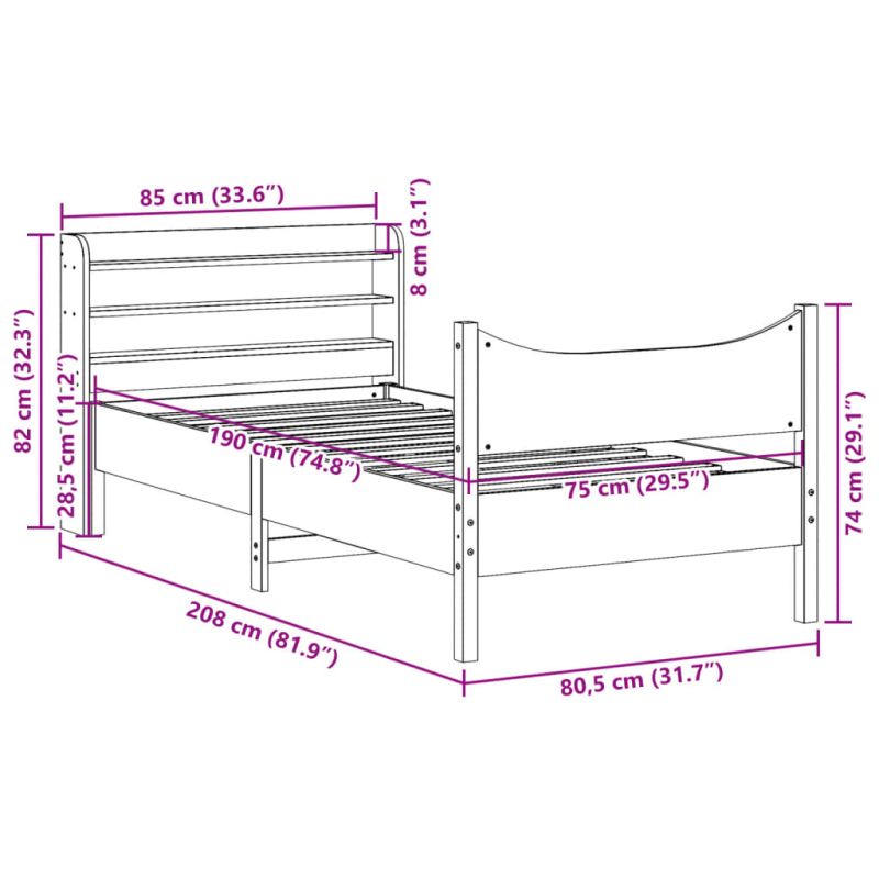 Начало Мебели Легла и аксесоари Легла и рамки за легла Рамка за легло с табла, 75x190 см, борово дърво масив