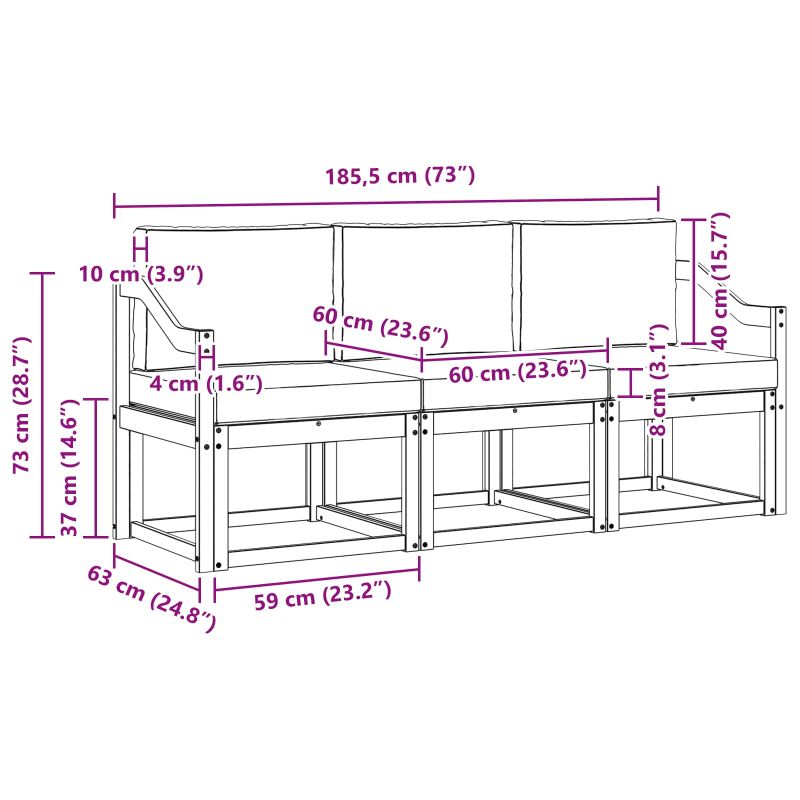 • 3 x Среден диван: 59 x 63 x 73 см (Д x Ш x В)