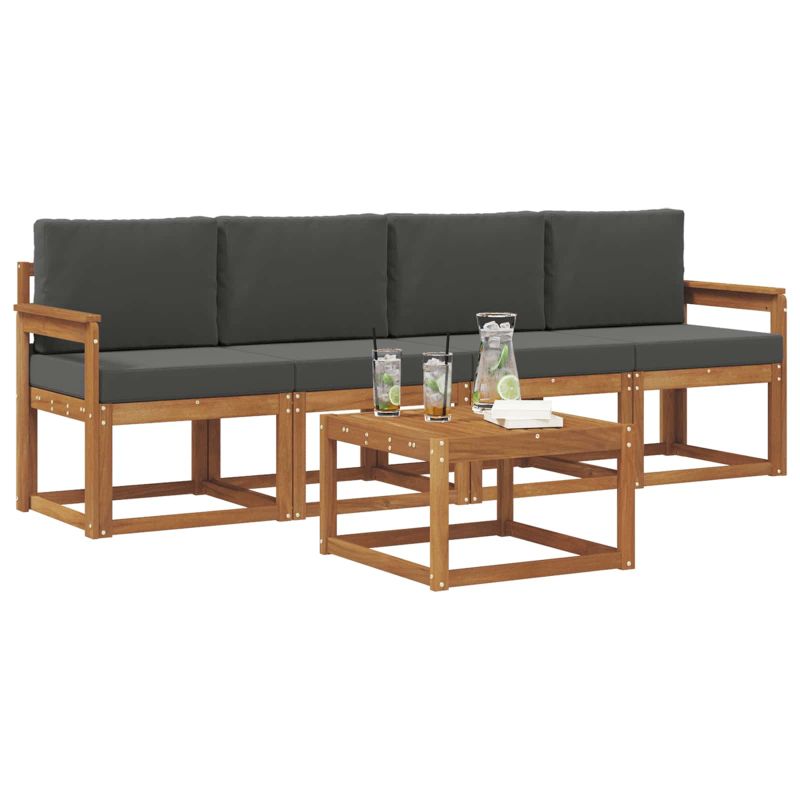Комплект дивани за открито 5 pcs Натурален и Антрацит