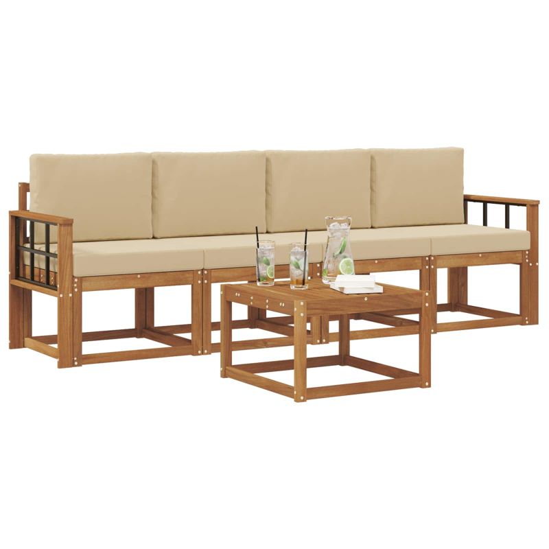 Комплект дивани за открито 5 pcs Натурален и Бежов