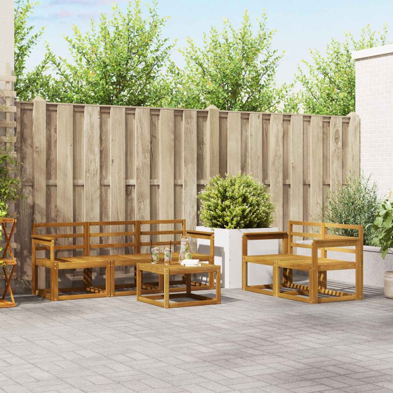 Комплектът за външни мебели съчетава стил и удобство, създавайки впечатляващо място за всяка градина или тераса. Модерният му дизайн с ясни линии и минималистични детайли внася елегантност и поддържа комфорта и социалните събирания на открито. Изработен изцяло от масивна акациева дървесина, комплектът осигурява издръжливост и дълготрайна привлекателност, правейки го прекрасен избор за тези, които искат функционалност и модерен вид. Здрава масивна акациева дървесина: Този комплект мебели е направен от масивна акациева дървесина, известна с устойчивостта си на външни условия. Здравата конструкция осигурява дълготрайна стабилност, а топлият цветен нюанс подхожда на всяка градина или тераса. Устойчив на времето дизайн: С лакирана повърхност, комплектът предлага допълнителна защита от слънце и лек дъжд. Полираното покритие помага да се запази вида му и осигурява дълготрайна употреба във вашата градина или тераса. Характеристики и дизайн: Всяка част е проектирана с внимание към стила и функциите. Структурните елементи предоставят комфорт, а свързаният дизайн гарантира визуално хармонично изглеждащ комплект, идеален за различни случаи на открито. Комфорт и гъвкавост: Модулният дизайн позволява различни конфигурации, подходящи за всякакви нужди. Перфектен за почивка, социални срещи или тихи моменти с книга, комплектът се адаптира лесно към всяка обстановка. Лесна поддръжка: За да запазите мебелите в отлично състояние, почиствайте с влажна кърпа и избягвайте агресивни препарати. Редовната грижа удължава живота на мебелите и запазва добрия вид.