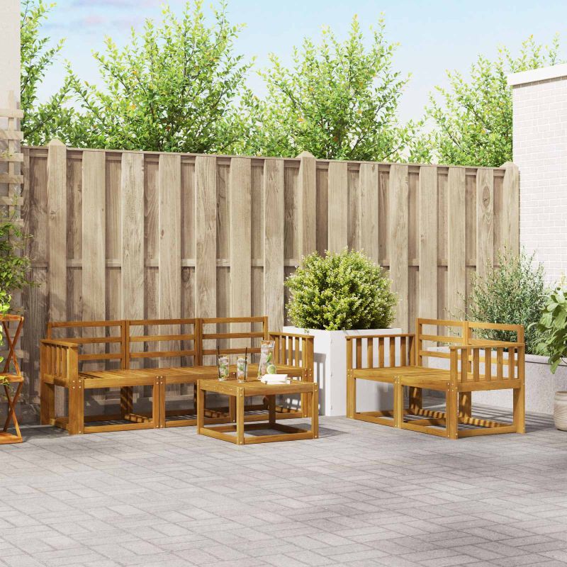 Комплектът за външни мебели съчетава стил и удобство, създавайки впечатляващо място за всяка градина или тераса. Модерният му дизайн с ясни линии и минималистични детайли внася елегантност и поддържа комфорта и социалните събирания на открито. Изработен изцяло от масивна акациева дървесина, комплектът осигурява издръжливост и дълготрайна привлекателност, правейки го прекрасен избор за тези, които искат функционалност и модерен вид. Здрава масивна акациева дървесина: Този комплект мебели е направен от масивна акациева дървесина, известна с устойчивостта си на външни условия. Здравата конструкция осигурява дълготрайна стабилност, а топлият цветен нюанс подхожда на всяка градина или тераса. Устойчив на времето дизайн: С лакирана повърхност, комплектът предлага допълнителна защита от слънце и лек дъжд. Полираното покритие помага да се запази вида му и осигурява дълготрайна употреба във вашата градина или тераса. Характеристики и дизайн: Всяка част е проектирана с внимание към стила и функциите. Структурните елементи предоставят комфорт, а свързаният дизайн гарантира визуално хармонично изглеждащ комплект, идеален за различни случаи на открито. Комфорт и гъвкавост: Модулният дизайн позволява различни конфигурации, подходящи за всякакви нужди. Перфектен за почивка, социални срещи или тихи моменти с книга, комплектът се адаптира лесно към всяка обстановка. Лесна поддръжка: За да запазите мебелите в отлично състояние, почиствайте с влажна кърпа и избягвайте агресивни препарати. Редовната грижа удължава живота на мебелите и запазва добрия вид.