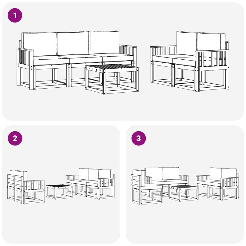 Комплектът за външни мебели съчетава стил и удобство, създавайки впечатляващо място за всяка градина или тераса. Модерният му дизайн с ясни линии и минималистични детайли внася елегантност и поддържа комфорта и социалните събирания на открито. Изработен изцяло от масивна акациева дървесина, комплектът осигурява издръжливост и дълготрайна привлекателност, правейки го прекрасен избор за тези, които искат функционалност и модерен вид. Здрава масивна акациева дървесина: Този комплект мебели е направен от масивна акациева дървесина, известна с устойчивостта си на външни условия. Здравата конструкция осигурява дълготрайна стабилност, а топлият цветен нюанс подхожда на всяка градина или тераса. Устойчив на времето дизайн: С лакирана повърхност, комплектът предлага допълнителна защита от слънце и лек дъжд. Полираното покритие помага да се запази вида му и осигурява дълготрайна употреба във вашата градина или тераса. Характеристики и дизайн: Всяка част е проектирана с внимание към стила и функциите. Структурните елементи предоставят комфорт, а свързаният дизайн гарантира визуално хармонично изглеждащ комплект, идеален за различни случаи на открито. Комфорт и гъвкавост: Модулният дизайн позволява различни конфигурации, подходящи за всякакви нужди. Перфектен за почивка, социални срещи или тихи моменти с книга, комплектът се адаптира лесно към всяка обстановка. Лесна поддръжка: За да запазите мебелите в отлично състояние, почиствайте с влажна кърпа и избягвайте агресивни препарати. Редовната грижа удължава живота на мебелите и запазва добрия вид.
