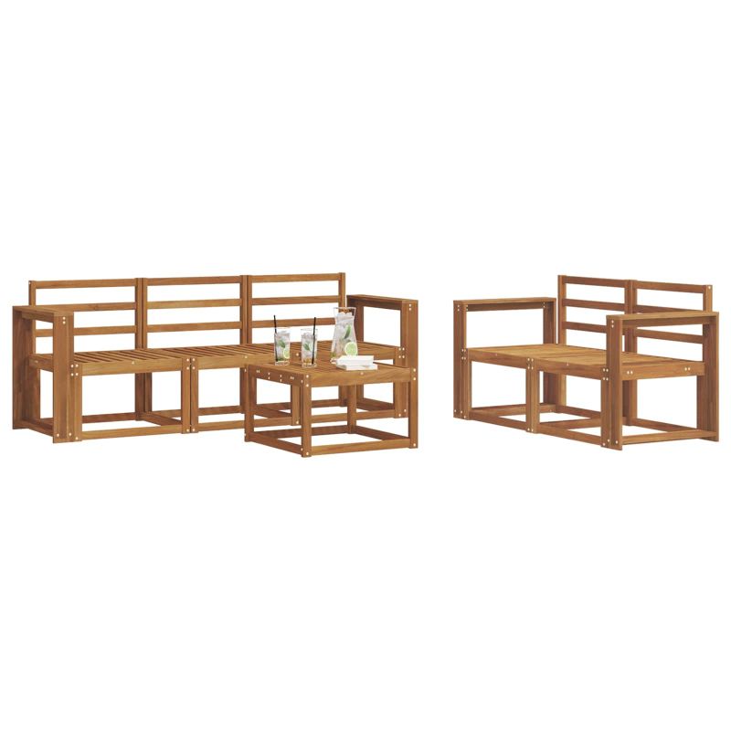 Комплектът за външни мебели съчетава стил и удобство, създавайки впечатляващо място за всяка градина или тераса. Модерният му дизайн с ясни линии и минималистични детайли внася елегантност и поддържа комфорта и социалните събирания на открито. Изработен изцяло от масивна акациева дървесина, комплектът осигурява издръжливост и дълготрайна привлекателност, правейки го прекрасен избор за тези, които искат функционалност и модерен вид. Здрава масивна акациева дървесина: Този комплект мебели е направен от масивна акациева дървесина, известна с устойчивостта си на външни условия. Здравата конструкция осигурява дълготрайна стабилност, а топлият цветен нюанс подхожда на всяка градина или тераса. Устойчив на времето дизайн: С лакирана повърхност, комплектът предлага допълнителна защита от слънце и лек дъжд. Полираното покритие помага да се запази вида му и осигурява дълготрайна употреба във вашата градина или тераса. Характеристики и дизайн: Всяка част е проектирана с внимание към стила и функциите. Структурните елементи предоставят комфорт, а свързаният дизайн гарантира визуално хармонично изглеждащ комплект, идеален за различни случаи на открито. Комфорт и гъвкавост: Модулният дизайн позволява различни конфигурации, подходящи за всякакви нужди. Перфектен за почивка, социални срещи или тихи моменти с книга, комплектът се адаптира лесно към всяка обстановка. Лесна поддръжка: За да запазите мебелите в отлично състояние, почиствайте с влажна кърпа и избягвайте агресивни препарати. Редовната грижа удължава живота на мебелите и запазва добрия вид.