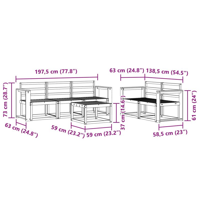 • 5 x Среден диван: 59 x 63 x 73 см (Д x Ш x В)