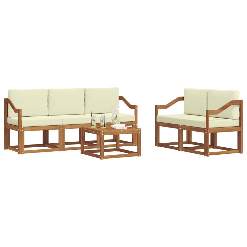 Комплект дивани за открито 6 pcs Натурален и Крема