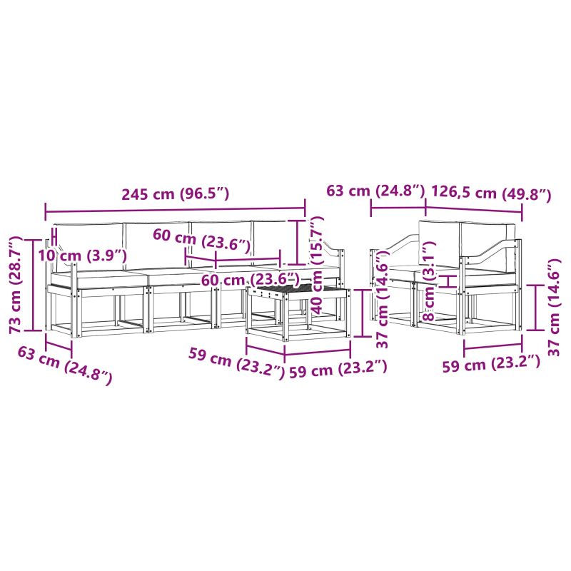 Този комплект дивани за открито е елегантен и практичен, идеален за градински и терасови изживявания. Има прост, съвременен дизайн и е изработен от устойчиви материали. Цветът на рамката перфектно се вписва в природата, което го прави идеален избор за разнообразни поводи, било то релаксация или събирания с приятели. Масивна акациева дървесина: Изключително издръжлив материал, който запазва красотата и устойчивостта си на открито. Осигурява надеждност за години напред. Включени компоненти: Ергономични подлакътници и облегалки за максимален комфорт. Здравата рамка осигурява стабилност по време на ползване. Сладък слатен дизайн: Минималистичния стил е не само красив, но и практичен, предоставяйки добра въздухопропускливост. Функционалност и стил: Проектиран е да бъде едновременно удобен и функционален, идеален за социализиране и почивка на открито. Грижа и поддръжка: Лесно поддържане - просто прахосвайте с кърпа. Използването на защитно покривало удължава живота му.