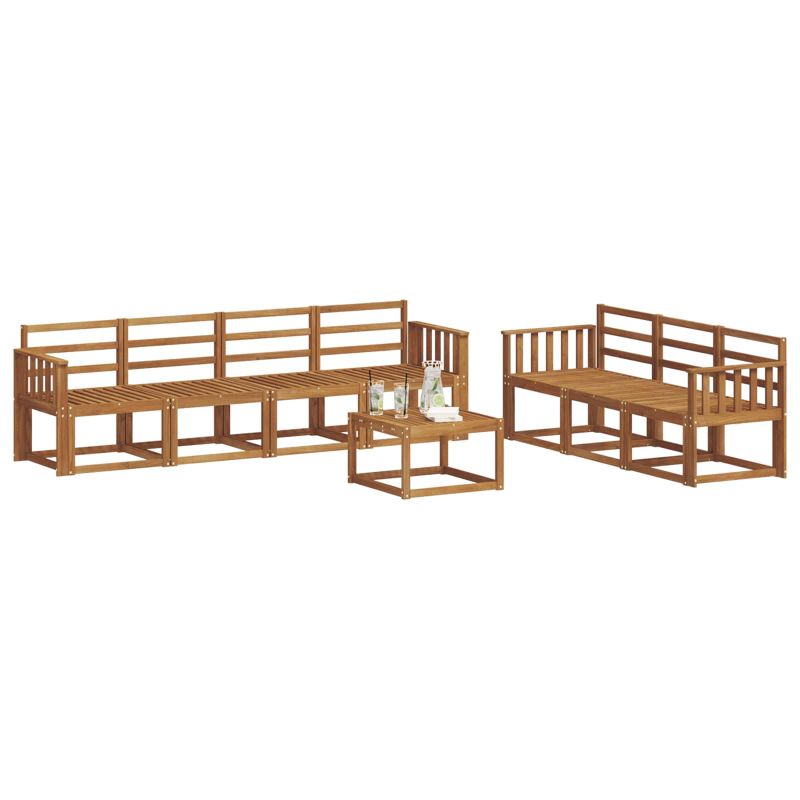 Този комплект за външни мебели обединява стил и практичност, създаваща уникален акцент за градината или терасата. Със своя модерен дизайн, чисти линии и минималистичен вид, той добавя елегантност и е идеален за социални събития. Направен е от масивна акациева дървесина, която гарантира здравина и дълготрайна привлекателност - перфектен за тези, които търсят стил и комфорт навън. Издръжлива масивна акациева дървесина: Тази мебел е изработена от масивна акациева дървесина, трайна и устойчива, идеална за всякакви външни условия. Конструкцията осигурява надеждност и стил, а топлият природен тон придава уют на всяка градина. Устойчив на климатични условия дизайн: С лакирана повърхност, този комплект предлага защита от слънце и дъжд. Полираният завършек запазва външния вид и функционалността, за дълготрайно удоволствие за вашия двор или тераса. Компоненти и дизайн: Всеки елемент, от подлакътниците до гръбчетата, е създаден с мисъл за стил и удобство. Осигурява допълнителен комфорт, а сбитият дизайн го прави визуално балансиран, подходящ за всякакви поводи на открито. Комфорт и гъвкавост: Модулният дизайн позволява различни конфигурации, подходящи за всяко пространство. Отличен за разпускане или социални събирания, комплектът лесно се адаптира, предоставяйки комфорт и удобство по всяко време. Лесна поддръжка: Поддържайте мебелите с влажна кърпа и избягвайте агресивни чистители. Редовната поддръжка запазва външния им вид и удължава живота на мебелите.