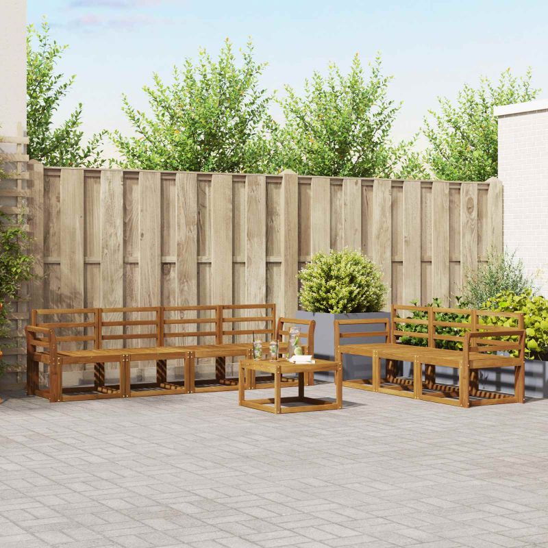 Този комплект за външни мебели обединява стил и практичност, създаваща уникален акцент за градината или терасата. Със своя модерен дизайн, чисти линии и минималистичен вид, той добавя елегантност и е идеален за социални събития. Направен е от масивна акациева дървесина, която гарантира здравина и дълготрайна привлекателност - перфектен за тези, които търсят стил и комфорт навън. Издръжлива масивна акациева дървесина: Тази мебел е изработена от масивна акациева дървесина, трайна и устойчива, идеална за всякакви външни условия. Конструкцията осигурява надеждност и стил, а топлият природен тон придава уют на всяка градина. Устойчив на климатични условия дизайн: С лакирана повърхност, този комплект предлага защита от слънце и дъжд. Полираният завършек запазва външния вид и функционалността, за дълготрайно удоволствие за вашия двор или тераса. Компоненти и дизайн: Всеки елемент, от подлакътниците до гръбчетата, е създаден с мисъл за стил и удобство. Осигурява допълнителен комфорт, а сбитият дизайн го прави визуално балансиран, подходящ за всякакви поводи на открито. Комфорт и гъвкавост: Модулният дизайн позволява различни конфигурации, подходящи за всяко пространство. Отличен за разпускане или социални събирания, комплектът лесно се адаптира, предоставяйки комфорт и удобство по всяко време. Лесна поддръжка: Поддържайте мебелите с влажна кърпа и избягвайте агресивни чистители. Редовната поддръжка запазва външния им вид и удължава живота на мебелите.