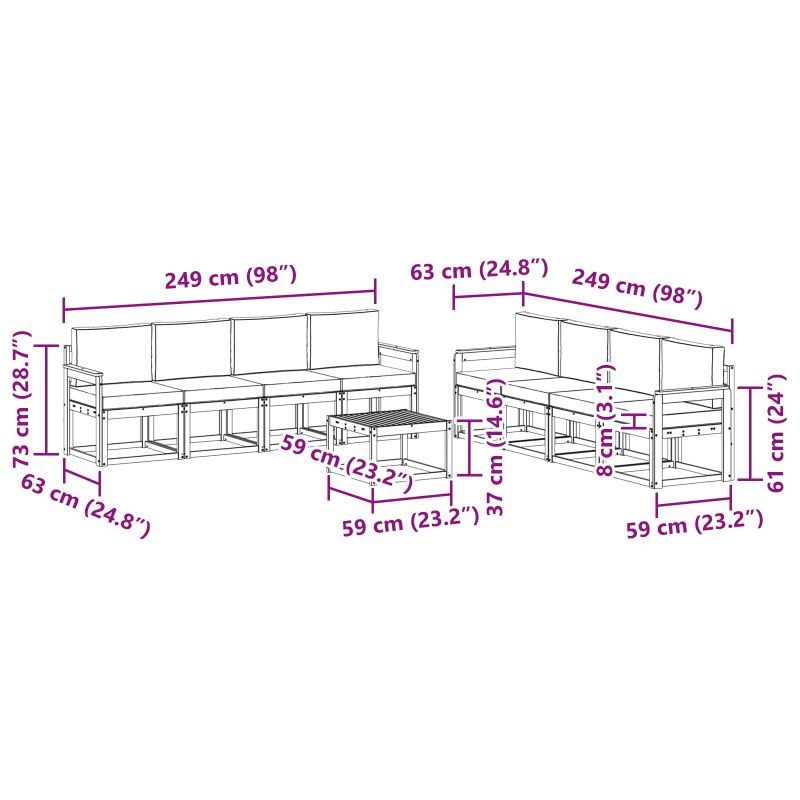 Този комплект за открит секционен диван е наистина страхотно допълнение за всяка градина или тераса. Направен е от здрава акациева дървесина и предлага стабилна конструкция, която е дълготрайна дори на открито. Рамката е проектирана с пукнатини, които не само изглеждат добре, а и осигуряват допълнителна вентилация, така че да е удобно за почивка и социални събирания. Чистите кафяви нюанси на рамката и повърхността отлично допълват съвременния му дизайн, идеален за събирания под слънцето с близки. Материали: Рамката, подлакътниците и гърба са направени от масивна акациева дървесина, което осигурява здравина и естествено усещане. Акациевата дървесина е известна със своята дълготрайност и способност да устои на времето, така че можете да се насладите на откритите условия без проблем. Включени компоненти: Просторният дизайн предлага ергономични подлакътници и поддържащ гръб, което прави употребата много удобна. Устойчивата повърхност предлага стабилна основа за възглавничките и добавя стилен акцент на визията. Характеристики / Функция / Дизайн: Дизайнът с пукнатини е важен и за форма, и за функция. Той не само изглежда модерно, но и позволява удобно оттичане и циркулация на въздуха, намалявайки натрупването на влага. Минималистичната декорация подчертава съвременната естетика. Препоръчителни употреби: Идеален за градини и тераси, този диван е перфектен за летни събирания или спокойни вечери с книга. Може да се ползва за вечеря на открито или за приятни разговори с близки. Поддръжка и поддържане: Можете да почиствате с мека, суха кърпа, за да премахнете прах и мръсотия и да запазите блестящия вид на мебелите. При лошо време помислете за използване на покритие, за да защитите естествения вид на дървото. Редовната грижа ще удължи живота на дивана и ще ви радва дълго време.