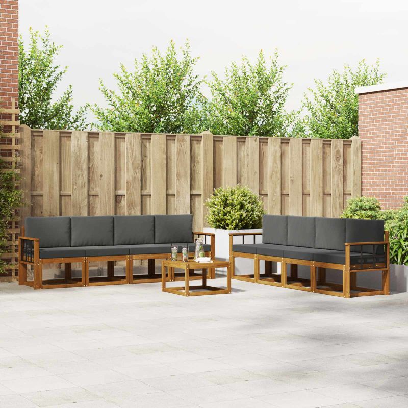 Комплект дивани за открито 9 pcs Натурален и Антрацит