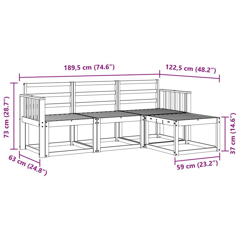 • 3 x Среден диван: 59 x 63 x 73 см (Д x Ш x В)