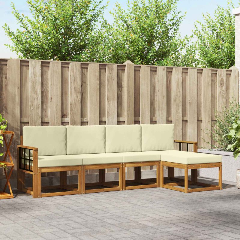 Комплект дивани за открито 5 pcs Натурален и Крема