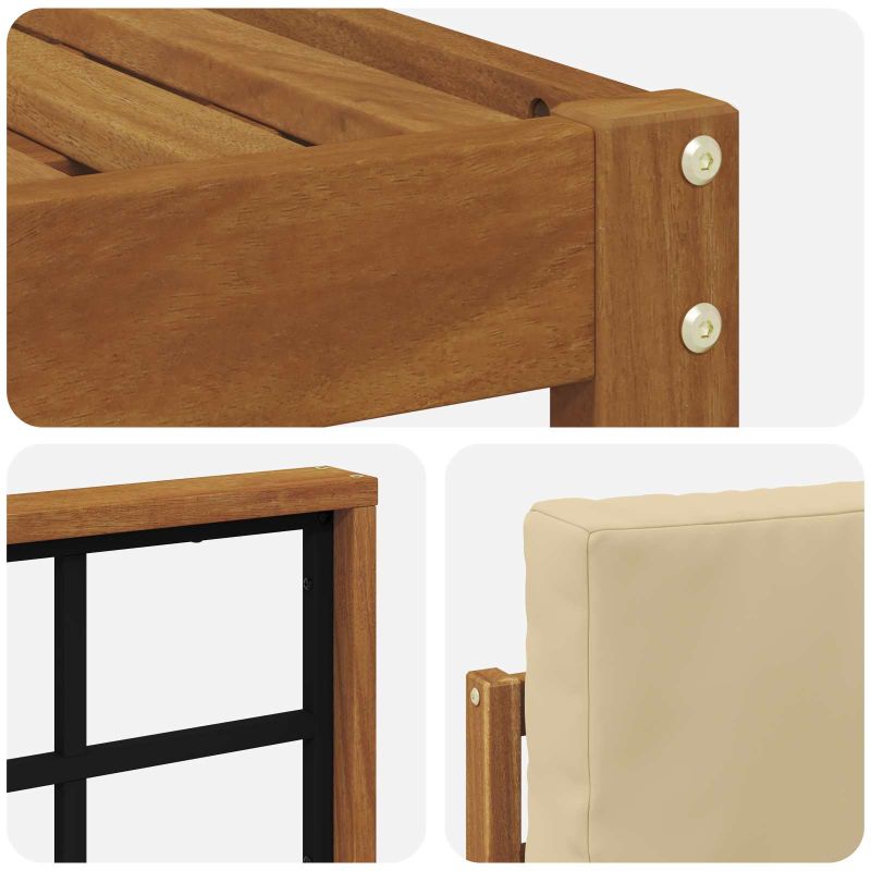 Този набор от градински секционни дивани е проектиран да комбинира стил и практичност, подходящ за съвременни градини и тераси. С минималистичен и елегантен дизайн, той е чудесно допълнение, което създава приятно открито пространство за открито забавление или просто релакс. Изискан и здрав, комплектът е устойчив на атмосферни условия и е идеален за всякакви модерни открити пространства. Материали: Изработен е от здрава масивна акация, известна със своята дълготрайност и устойчивост. Структурата и богатият цвят на дървесината придават луксозен вид за всяко открито пространство и изискват минимална поддръжка. Включени компоненти: Комплектът включва здрави подлакътници и седалки с единен ярко кафяв нюанс, предлагайки атрактивна и удобна обстановка. Решетъчният дизайн добавя интерес и улеснява отвеждането на водата. Характеристики / Функция / Дизайн: Решетъчният дизайн помага за циркулацията на въздуха, така че е комфортно дори в горещо време. Подходящ е за различни конфигурации на сядане, което увеличава гъвкавостта на вашето открито пространство с лекота и стил. Препоръчителни приложения: Създаден за открито, този комплект е идеален за градини, тераси и всякакъв тип открити пространства. Чудесен е за градински партита или просто за релакс с приятели и семейство, хармонира с разнообразни декори. Грижа и поддръжка: Сглобяването изисква двама души и отвертка, следвайки инструкциите за безопасност. За да запазите хубавия му вид, почиствайте с д ry кърпа и използвайте покривала при лошо време.