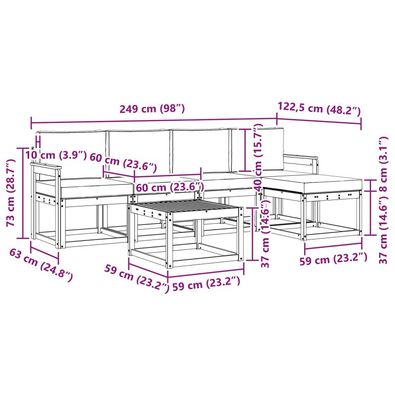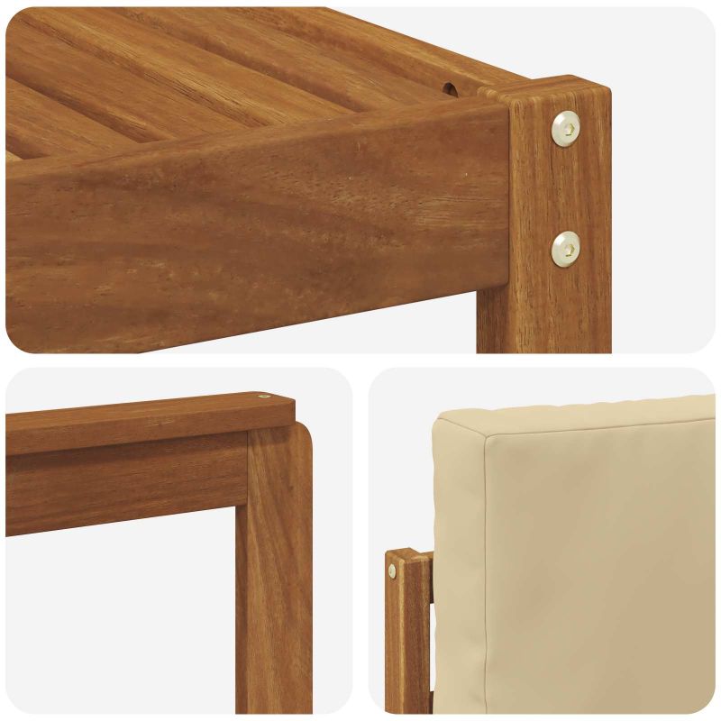 Този комплект за открито е съчетание от стил и практичност. Създаден за романтики на открито, дизайнът му е изчистен и елегантен, разкривайки красивите природни нюанси на масивната акациева дървесина. Където и да го поставите, той ще преобрази всяка градина в уютно местенце. Перфектен за семейства или гости, предлага лекота и комфорт, приканвайки всички да се задържат и насладят на слънчевите следобеди. Издръжлива масивна акация: Направен изцяло от масивна акациева дървесина, този диван комплект е здрав и устоява на всички метеорологични условия. Естествените масла в акацията предлагат защита от климатичните промени, предоставяйки спокойствие за любителите на открито. Елегантен плоскостен дизайн: Плоската облегалка и седалка улесняват циркулацията на въздуха, осигурявайки комфорт дори в горещите следобеди. С модерен вид, забавлявайте се с удобно сядане. Ергономични подлакътници: Проектирани да предлагат удобна поза, тези подлакътници ще ви помогнат да се настаните с лекота. Изработени от масивна акация, съчетават стил и комфорт. Функционален модерен стил: Диванът е подходящ за различни градински и терасови стилове. С простия си дизайн, той е както практичен, така и елегантен, идеален за тези, които обичат съвременните корекции. Изисквания за сглобяване: За най-добри резултати, сглобяването е по-добре да се направи от двама души, изискващи отвертка. Това осигурява запазване на качеството и дълготрайност.