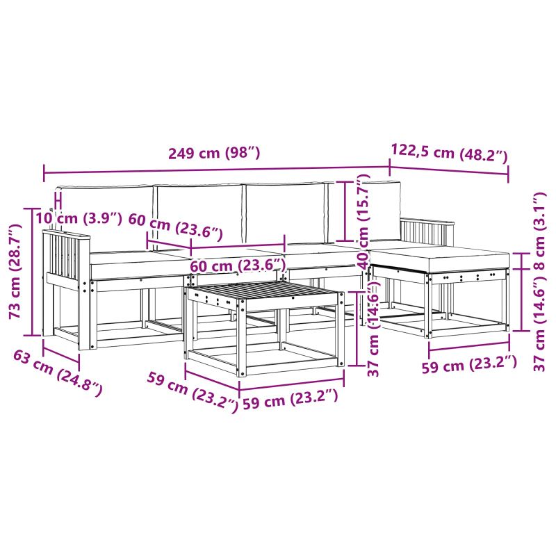Този комплект за открито е съчетание от стил и практичност. Създаден за романтики на открито, дизайнът му е изчистен и елегантен, разкривайки красивите природни нюанси на масивната акациева дървесина. Където и да го поставите, той ще преобрази всяка градина в уютно местенце. Перфектен за семейства или гости, предлага лекота и комфорт, приканвайки всички да се задържат и насладят на слънчевите следобеди. Издръжлива масивна акация: Направен изцяло от масивна акациева дървесина, този диван комплект е здрав и устоява на всички метеорологични условия. Естествените масла в акацията предлагат защита от климатичните промени, предоставяйки спокойствие за любителите на открито. Елегантен плоскостен дизайн: Плоската облегалка и седалка улесняват циркулацията на въздуха, осигурявайки комфорт дори в горещите следобеди. С модерен вид, забавлявайте се с удобно сядане. Ергономични подлакътници: Проектирани да предлагат удобна поза, тези подлакътници ще ви помогнат да се настаните с лекота. Изработени от масивна акация, съчетават стил и комфорт. Функционален модерен стил: Диванът е подходящ за различни градински и терасови стилове. С простия си дизайн, той е както практичен, така и елегантен, идеален за тези, които обичат съвременните корекции. Изисквания за сглобяване: За най-добри резултати, сглобяването е по-добре да се направи от двама души, изискващи отвертка. Това осигурява запазване на качеството и дълготрайност.