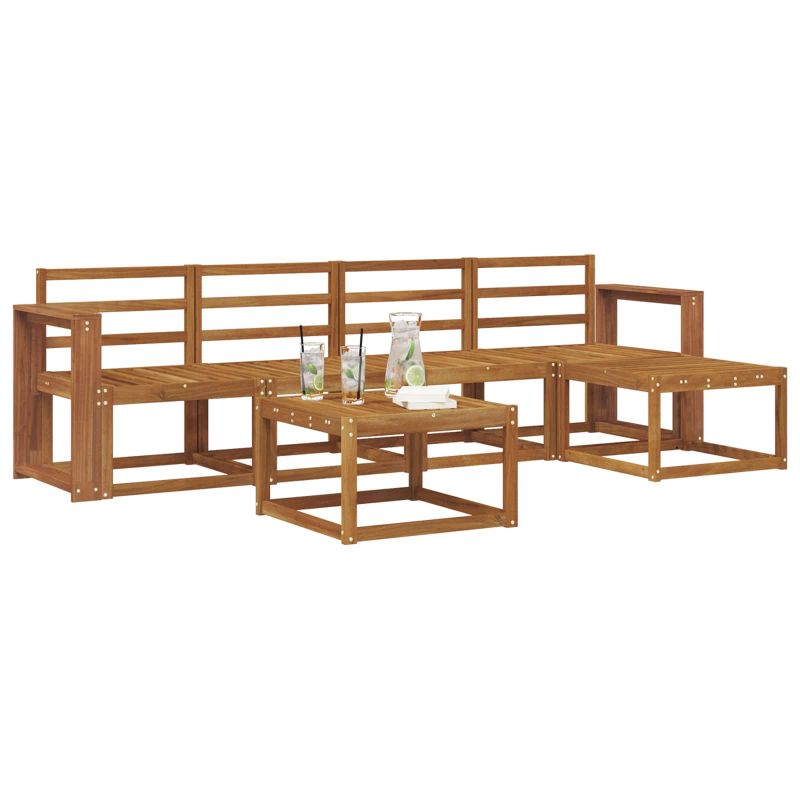 Този комплект за открито е съчетание от стил и практичност. Създаден за романтики на открито, дизайнът му е изчистен и елегантен, разкривайки красивите природни нюанси на масивната акациева дървесина. Където и да го поставите, той ще преобрази всяка градина в уютно местенце. Перфектен за семейства или гости, предлага лекота и комфорт, приканвайки всички да се задържат и насладят на слънчевите следобеди. Издръжлива масивна акация: Направен изцяло от масивна акациева дървесина, този диван комплект е здрав и устоява на всички метеорологични условия. Естествените масла в акацията предлагат защита от климатичните промени, предоставяйки спокойствие за любителите на открито. Елегантен плоскостен дизайн: Плоската облегалка и седалка улесняват циркулацията на въздуха, осигурявайки комфорт дори в горещите следобеди. С модерен вид, забавлявайте се с удобно сядане. Ергономични подлакътници: Проектирани да предлагат удобна поза, тези подлакътници ще ви помогнат да се настаните с лекота. Изработени от масивна акация, съчетават стил и комфорт. Функционален модерен стил: Диванът е подходящ за различни градински и терасови стилове. С простия си дизайн, той е както практичен, така и елегантен, идеален за тези, които обичат съвременните корекции. Изисквания за сглобяване: За най-добри резултати, сглобяването е по-добре да се направи от двама души, изискващи отвертка. Това осигурява запазване на качеството и дълготрайност.