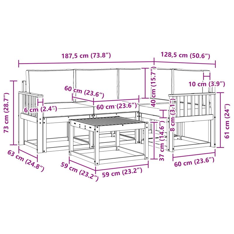 • 4 x Възглавница за сядане: 60 x 60 x 8 см (Ш x Д x В)