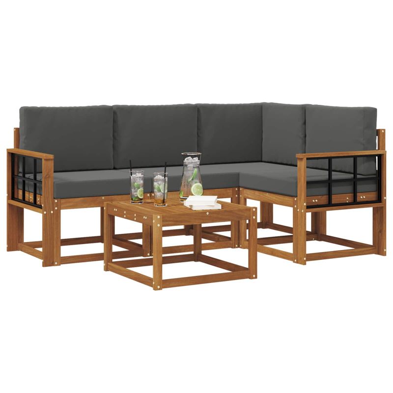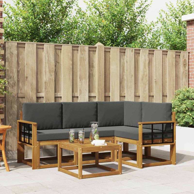 Този комплект мебели е комбинация от стил и практичност, създаваща изискана централна точка за всяка градина или тераса. С модерния си дизайн и чисти линии, той добавя елегантност и насърчава релаксацията на открито и социалният живот. Изцяло от масивна акациева дървесина, комплектът е здрав и визуално привлекателен, перфектен за тези, които искат практичност и стил. Здрави масивни акациеви дървесини: Комплектът е изработен от акациево дърво, известно със своята здравина и устойчивост на времето. Солидната конструкция осигурява надеждност и дълготрайност, а топлият естествен тон подобрява всяка градина или тераса. Устойчив на времето дизайн: Полираната повърхност осигурява защита от слънце и дъжд. Помага да запазите външния вид и функционалността, осигурявайки дълготрайност за вашата градина, тераса или заден двор. Компоненти и дизайн: Всеки детайл е проектиран с мисъл за стил и функция, предлагаща комфорт и естетика. Дизайнът гарантира визуално хармонично усещане за различни поводи на открито. Комфорт и многофункционалност: Модулният дизайн позволява адаптиране към различни нужди и пространства. Идеален е за релакс, социални събирания или тихо четене, лесно се адаптира към всяка среда и увеличава комфорта. Лесна поддръжка и грижи: Поддържайте мебелите в добро състояние, използвайте влажна кърпа и избягвайте агресивни почистващи средства. Редовната поддръжка запазва вида им и увеличава живота на мебелите.