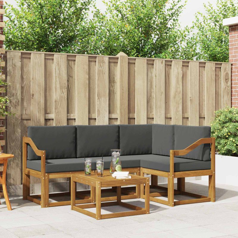 Този комплект мебели е комбинация от стил и практичност, създаваща изискана централна точка за всяка градина или тераса. С модерния си дизайн и чисти линии, той добавя елегантност и насърчава релаксацията на открито и социалният живот. Изцяло от масивна акациева дървесина, комплектът е здрав и визуално привлекателен, перфектен за тези, които искат практичност и стил. Здрави масивни акациеви дървесини: Комплектът е изработен от акациево дърво, известно със своята здравина и устойчивост на времето. Солидната конструкция осигурява надеждност и дълготрайност, а топлият естествен тон подобрява всяка градина или тераса. Устойчив на времето дизайн: Полираната повърхност осигурява защита от слънце и дъжд. Помага да запазите външния вид и функционалността, осигурявайки дълготрайност за вашата градина, тераса или заден двор. Компоненти и дизайн: Всеки детайл е проектиран с мисъл за стил и функция, предлагаща комфорт и естетика. Дизайнът гарантира визуално хармонично усещане за различни поводи на открито. Комфорт и многофункционалност: Модулният дизайн позволява адаптиране към различни нужди и пространства. Идеален е за релакс, социални събирания или тихо четене, лесно се адаптира към всяка среда и увеличава комфорта. Лесна поддръжка и грижи: Поддържайте мебелите в добро състояние, използвайте влажна кърпа и избягвайте агресивни почистващи средства. Редовната поддръжка запазва вида им и увеличава живота на мебелите.