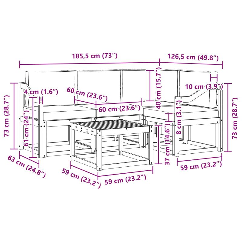 Този комплект мебели е комбинация от стил и практичност, създаваща изискана централна точка за всяка градина или тераса. С модерния си дизайн и чисти линии, той добавя елегантност и насърчава релаксацията на открито и социалният живот. Изцяло от масивна акациева дървесина, комплектът е здрав и визуално привлекателен, перфектен за тези, които искат практичност и стил. Здрави масивни акациеви дървесини: Комплектът е изработен от акациево дърво, известно със своята здравина и устойчивост на времето. Солидната конструкция осигурява надеждност и дълготрайност, а топлият естествен тон подобрява всяка градина или тераса. Устойчив на времето дизайн: Полираната повърхност осигурява защита от слънце и дъжд. Помага да запазите външния вид и функционалността, осигурявайки дълготрайност за вашата градина, тераса или заден двор. Компоненти и дизайн: Всеки детайл е проектиран с мисъл за стил и функция, предлагаща комфорт и естетика. Дизайнът гарантира визуално хармонично усещане за различни поводи на открито. Комфорт и многофункционалност: Модулният дизайн позволява адаптиране към различни нужди и пространства. Идеален е за релакс, социални събирания или тихо четене, лесно се адаптира към всяка среда и увеличава комфорта. Лесна поддръжка и грижи: Поддържайте мебелите в добро състояние, използвайте влажна кърпа и избягвайте агресивни почистващи средства. Редовната поддръжка запазва вида им и увеличава живота на мебелите.