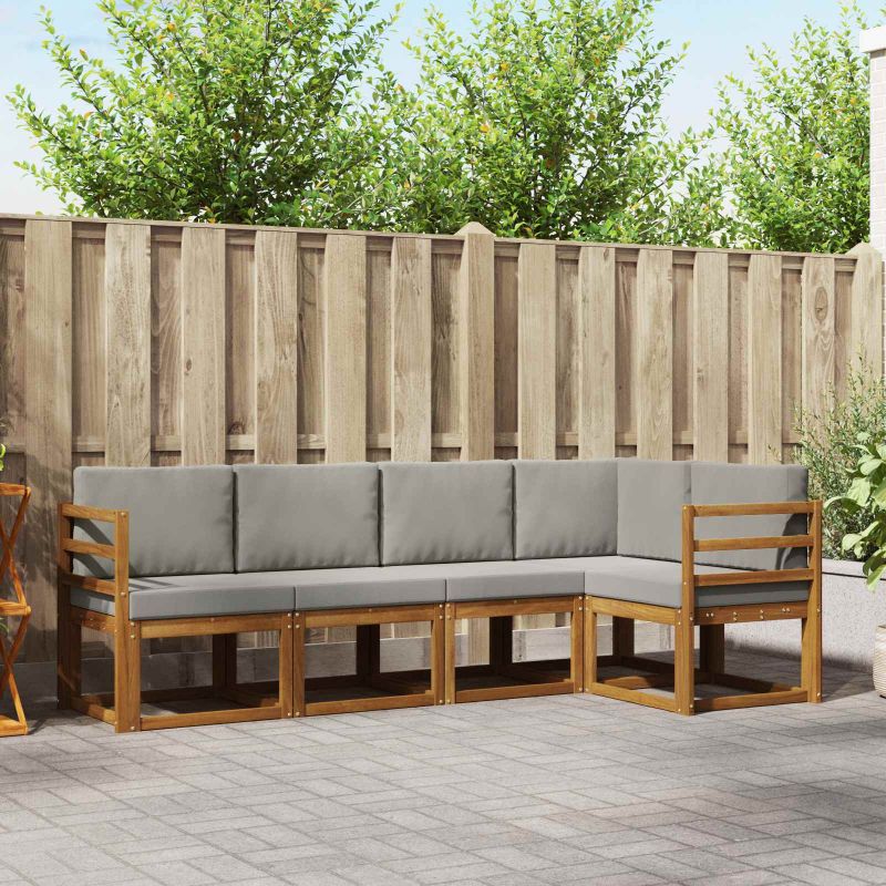 Този комплект мебели за открито съчетава стил и удобство, ставайки точка на фокус в градината или на терасата. Със своя модерен дизайн, с изчистени линии и минималистични акценти, добавя нотка елегантност, докато служи за място за разпускане и социални срещи. Направен от масивна акациева дървесина, предлага дълготрайност и визуален чар, идеален за тези, които искат практичност и модерна визия в мебели за открито. Издръжлива масивна акациева дървесина: Направен от масивна акациева дървесина, този комплект е известен със здравината и устойчивостта си на атмосферата. Здравата конструкция осигурява надеждна основа и стабилност, докато топлият естествен цвят украсва всяка градина или тераса. Устойчив на времето дизайн: Лакираната повърхност на този комплект мебели предоставя допълнителна защита от слънце, лек дъжд и различни външни условия. Полираното покритие помага да се запази външният вид и функционалността, осигурявайки дълготрайна издръжливост. Компоненти и дизайн: Всеки елемент, от подлакътниците до гръбчетата, е проектиран за стил и удобство. Тези функции осигуряват допълнителен комфорт, а свързаният дизайн гарантира визуално хармонично единство. Комфорт и универсалност: Модулният дизайн позволява различни конфигурации, подходящи за разнообразни пространства и нужди. Идеален за лениви следобеди, социални събирания или спокойни мигове с книга, този комплект лесно се адаптира към всяка открита настройка, максимизирайки удобството. Лесна поддръжка: За да запазиш мебелите в добро състояние, просто ги почисти с влажна кърпа и избягвай агресивните почистващи препарати. Редовната поддръжка помага да останат красиви и удължава живота на мебелите.