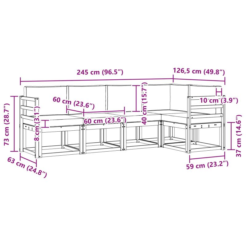 • 4 x среден диван: 59 x 63 x 73 см (Д x Ш x В)