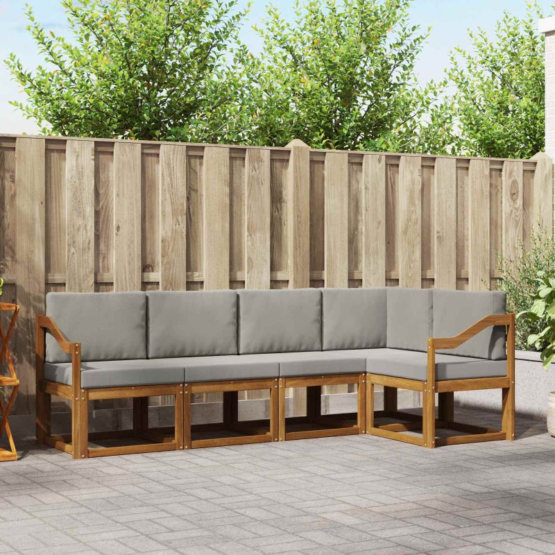 Този комплект мебели за открито съчетава стил и удобство, ставайки точка на фокус в градината или на терасата. Със своя модерен дизайн, с изчистени линии и минималистични акценти, добавя нотка елегантност, докато служи за място за разпускане и социални срещи. Направен от масивна акациева дървесина, предлага дълготрайност и визуален чар, идеален за тези, които искат практичност и модерна визия в мебели за открито. Издръжлива масивна акациева дървесина: Направен от масивна акациева дървесина, този комплект е известен със здравината и устойчивостта си на атмосферата. Здравата конструкция осигурява надеждна основа и стабилност, докато топлият естествен цвят украсва всяка градина или тераса. Устойчив на времето дизайн: Лакираната повърхност на този комплект мебели предоставя допълнителна защита от слънце, лек дъжд и различни външни условия. Полираното покритие помага да се запази външният вид и функционалността, осигурявайки дълготрайна издръжливост. Компоненти и дизайн: Всеки елемент, от подлакътниците до гръбчетата, е проектиран за стил и удобство. Тези функции осигуряват допълнителен комфорт, а свързаният дизайн гарантира визуално хармонично единство. Комфорт и универсалност: Модулният дизайн позволява различни конфигурации, подходящи за разнообразни пространства и нужди. Идеален за лениви следобеди, социални събирания или спокойни мигове с книга, този комплект лесно се адаптира към всяка открита настройка, максимизирайки удобството. Лесна поддръжка: За да запазиш мебелите в добро състояние, просто ги почисти с влажна кърпа и избягвай агресивните почистващи препарати. Редовната поддръжка помага да останат красиви и удължава живота на мебелите.