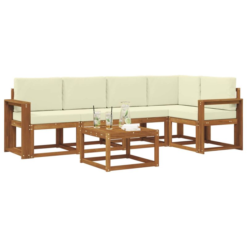 Комплект дивани за открито 6 pcs Натурален и Крема