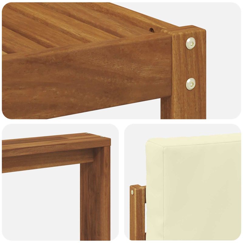 Комплектът за outdoor мебели съчетава стил и функционалност и е невероятен акцент за всяка градина или тераса. С модерен дизайн, с чисти линии и минималистични детайли, добавя елегантност и поддържа outdoor релаксация и социални събирания. Изцяло изработен от масивна акациева дървесина, комплектът предлага дългосрочна устойчива привлекателност, с което е идеален за тези, които търсят практичност и стил. Издръжлива масивна акациева дървесина: Изработена от акациева дървесина, тази outdoor мебел е известна с дълготрайността си и устойчивостта на лошо време. Здравата конструкция осигурява надеждна поддръжка и стабилност, а натуралният цвят добавя красота на всяка градина или тераса. Устойчив на атмосферни влияния дизайн: Този outdoor комплект разполага с лакирана повърхност, която защитава срещу слънце и леки дъждове. Полираното покритие запазва функционалността и дълготрайността на мебелите, независимо дали са в градината или на верандата. Компоненти и дизайн: Всяка част е замислена за стил и удобство. Поддържащата част осигурява комфорт, а координираният дизайн прави всичко визуално хармонично и стилно. Комфорт и многофункционалност: Модуларният дизайн позволява различни конфигурации, които отговарят на всичките ти нужди. Идеален е за релаксация или социални събирания. Лесно се адаптира към всяко outdoor пространство, като максимизира удобството и функционалността. Лесна поддръжка: За да поддържаш мебелите в добро състояние, просто избърсвай с влажна кърпа и избягвай агресивни почистващи средства. Редовната грижа ще запази вида и ще удължи живота на мебелите.