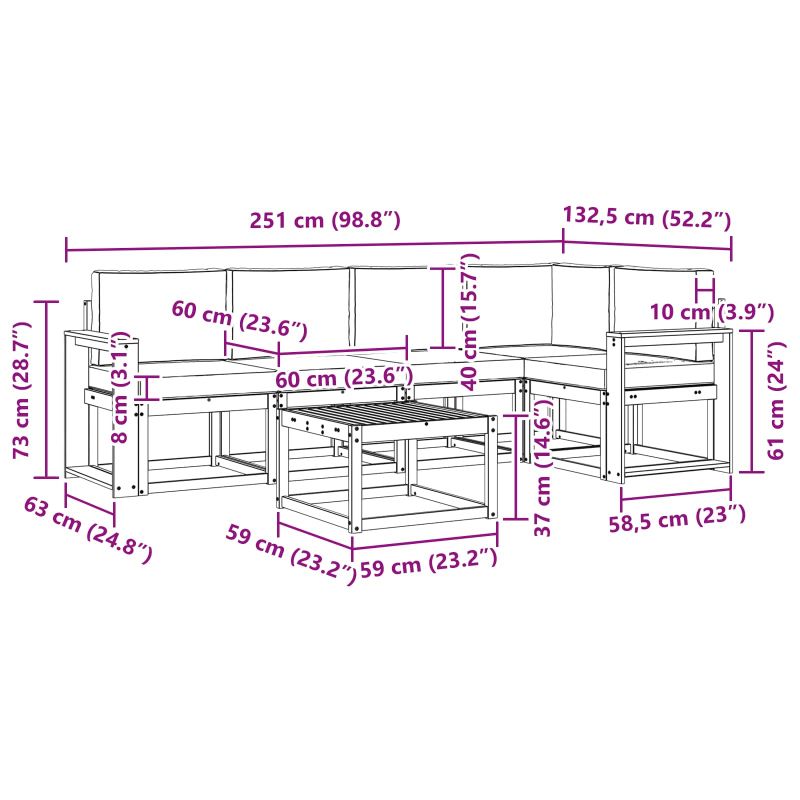 • 5 x Възглавница за сядане: 60 x 60 x 8 см (Д x Ш x В)