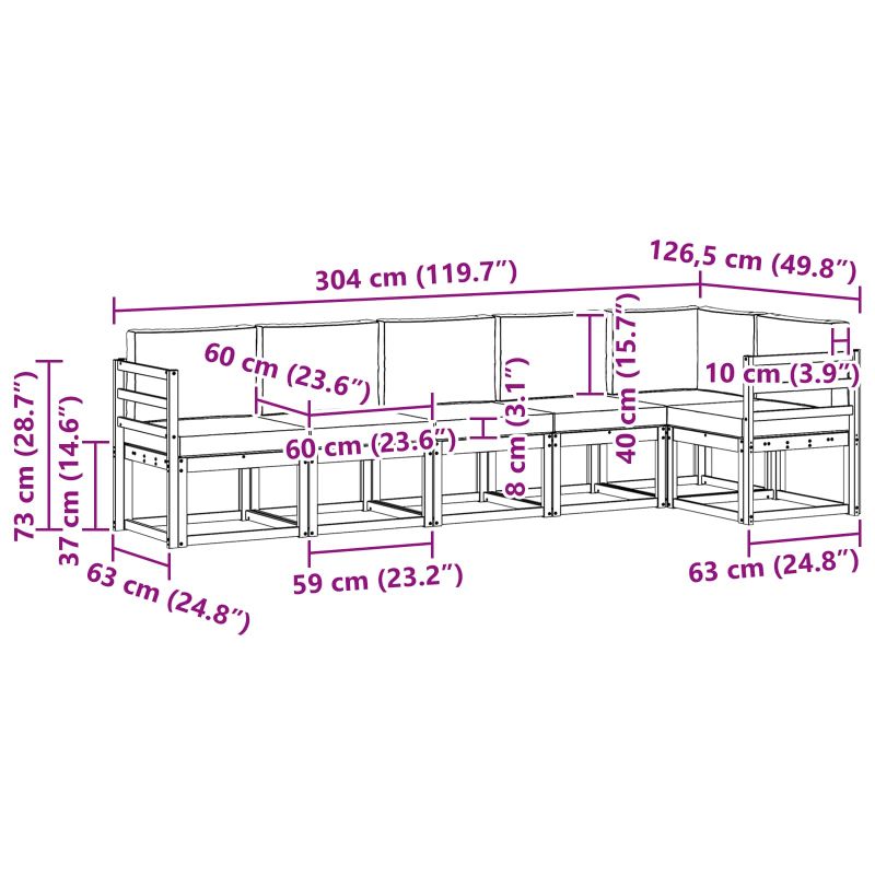 Този комплект мебели за открито съчетава стил с полезност, за да направи всяка градина или тераса впечатляваща. Модерният му дизайн с чисти линии и минимални детайли добавя елегантност, а същевременно насърчава релаксация на открито и социални събирания. Изработен е изцяло от стабилно акациево дърво, което гарантира дълготрайност и класен вид; идеален избор за тези, които искат комбинация от практичност и стил. Издръжлива акациева дървесина: Този комплект мебели е здрав и устойчив на атмосферни условия. Конструкцията осигурява надеждна опора, а топлият естествен тон е подходящ за всяка градина или тераса. Устойчив на времето: Лакираната повърхност ще ви защити от слънце и дъжд. Покритието помага за поддържане на визуалния вид и функционалността, осигурявайки дълготрайност за вашето открито пространство. Стил и функция: Всеки детайл, от подлакътниците до облегалките, е проектиран, за да бъде удобен и стилен. Дизайнът е визуално хармоничен, което го прави идеален за всякакви събирания. Комфорт на макс: Модулният дизайн позволява на дивана да се променя, за да отговаря на нуждите ви. Перфектен за релаксация с книга или за посещения с приятели, той се адаптира на мига за всякаква среда. Лесна грижа: За да запазите мебелите в перфектно състояние, просто ги чистете с влажна кърпа и избягвайте агресивни препарати. Редовната поддръжка ще удължи живота им.