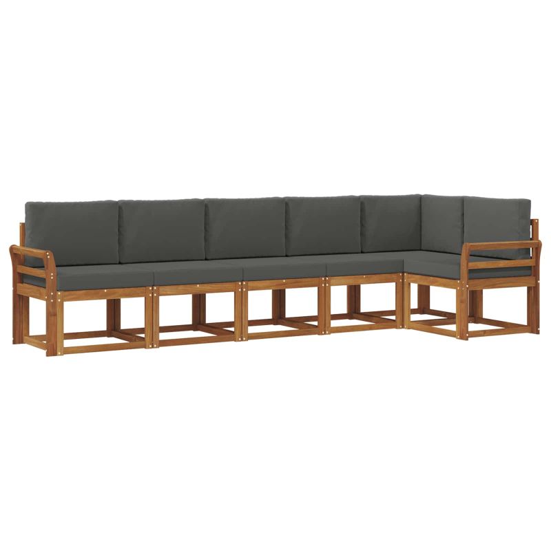 Този комплект мебели за открито съчетава стил с полезност, за да направи всяка градина или тераса впечатляваща. Модерният му дизайн с чисти линии и минимални детайли добавя елегантност, а същевременно насърчава релаксация на открито и социални събирания. Изработен е изцяло от стабилно акациево дърво, което гарантира дълготрайност и класен вид; идеален избор за тези, които искат комбинация от практичност и стил. Издръжлива акациева дървесина: Този комплект мебели е здрав и устойчив на атмосферни условия. Конструкцията осигурява надеждна опора, а топлият естествен тон е подходящ за всяка градина или тераса. Устойчив на времето: Лакираната повърхност ще ви защити от слънце и дъжд. Покритието помага за поддържане на визуалния вид и функционалността, осигурявайки дълготрайност за вашето открито пространство. Стил и функция: Всеки детайл, от подлакътниците до облегалките, е проектиран, за да бъде удобен и стилен. Дизайнът е визуално хармоничен, което го прави идеален за всякакви събирания. Комфорт на макс: Модулният дизайн позволява на дивана да се променя, за да отговаря на нуждите ви. Перфектен за релаксация с книга или за посещения с приятели, той се адаптира на мига за всякаква среда. Лесна грижа: За да запазите мебелите в перфектно състояние, просто ги чистете с влажна кърпа и избягвайте агресивни препарати. Редовната поддръжка ще удължи живота им.