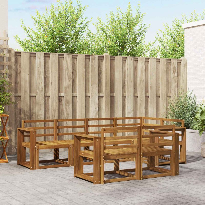 Комплектът градински секционен диван е супер добавка за всяка градина, патио или басейн. Изработен от масивна акациева дървесина, той е издръжлив и стилен. Със своя модерен дизайн, който е прост и функционален, е идеален за хора, които харесват чистите линии и минимализма. Перфектен е за събирания или за спокойни моменти, когато искате да се отпуснете. Този диван дава удобно място за сядане, което перфектно се вписва в откритото пространство. Независимо дали посрещате гости или просто се наслаждавате на уютен вечер, той осигурява и елегантност, и комфорт. Премиум масивна акация: С този диван от масивна акациева дървесина получавате супер здравина и атрактивен вид. Дървото е с прекрасни цветови нюанси, което го прави не само красиво, но и издържливо за дълго. Устойчиво е на атмосферни условия, така че ще изглежда отлично в откритите условия години напред. Лесно сглобяване: Нужни са двама души и отвертка за бързото сглобяване. Модулният дизайн позволява различни конфигурации, а интуитивното сглобяване прави този процес изключително бърз. Това дава възможност за персонализация на подредбата, за да отговори на вашите нужди. Функционални подлакътници: Подлакътниците от масивна акациева дървесина предлагат опора и стил. Ергономичният им дизайн е супер удобен, съчетавайки практичност и изтънченост. Всеки детайл добавя към общото излъчване, осигурявайки комфорт и стил. Стилен гръб с летви: Решетъчен гръб предлага опора и вентилация, подсилвайки стабилността на дивана, и повишава комфорта при употреба. Този изчислен детайл подобрява функционалността и внася нотка елегантност в дизайна. Вниманието към детайла подобрява цялостното изживяване на потребителя. Лесна поддръжка: Поддържайте комплекта си без усилия с лесни указания - просто забърсвайте с влажна кърпа и ползвайте покривала, когато не го ползвате. Това удължава живота на мебелите и запазва красивия вид, независимо от промените във времето.