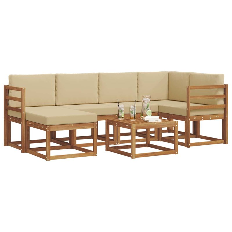 Комплект дивани за открито 7 pcs Натурален и Бежов